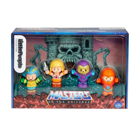 Protect planet Eternia and defend the secrets of Castle Grayskull with this special edition Little People Collector Masters of the Universe figure set by Fisher-Price! This set features four figures, styled to look just like classic characters He-Man, Beast Man, Skeletor and Man-At-Arms, all brought down to Little People toy size. This must-have figure set is a great gift for Masters of the Universe fans of all ages! Each figure measures about 3-inches tall and comes packaged in a window box.