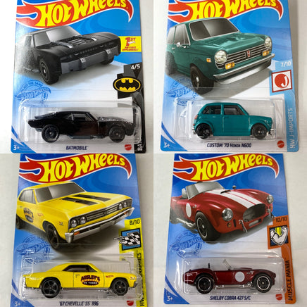 IN STOCK! 2021 Hot Wheels Mainline, The Batman Batmobile First Appearance, Custom Honda N600, ‘67 Chevelle SS 396, Shelby Cobra 427 S/C