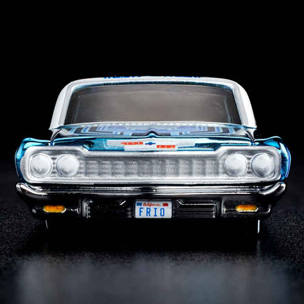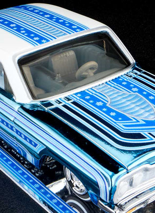 Dubbed “The Snowman,” this special RLC exclusive holiday edition ’64 Impala can dance up high, or appear to melt down low, with an adjustable/posable suspension. This 6-4 has an ice-cold, Spectraflame light blue paint job, snowflakes in the paint, and custom pinstriping – done by Vandervate, a former pinstriper himself. This Impala will give you chills … It's that cool!