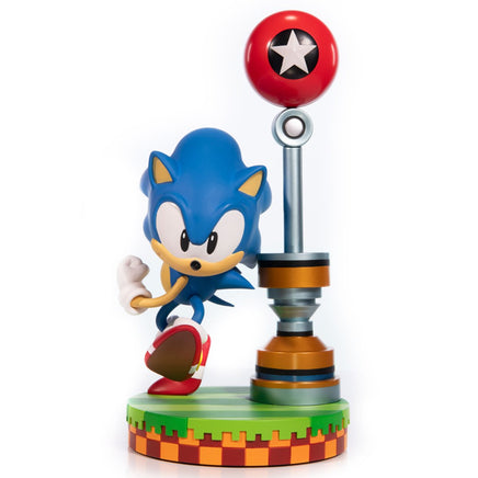 This highly detailed Sonic the Hedgehog Green Hill Zone Diorama 11-Inch Statue has the blue speedster striking a dynamic pose, revving up to run faster than the speed of sound. The base design is inspired by the Green Hill Zone, and the Star Post checkpoint on it can be rotated up to 90 degrees, allowing for multiple viewing angles. The PVC statue is housed in a beautifully designed collector's box that can turn and double as a diorama backdrop for added visual aesthetics! A F4F leaflet with 500 F4F reward points is also included. Order Sonic before he speeds away!