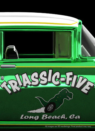 • Deco: Gloss white roof, “TRIASSIC-FIVE”, dinosaur logo, authentic sponsor logos on sides