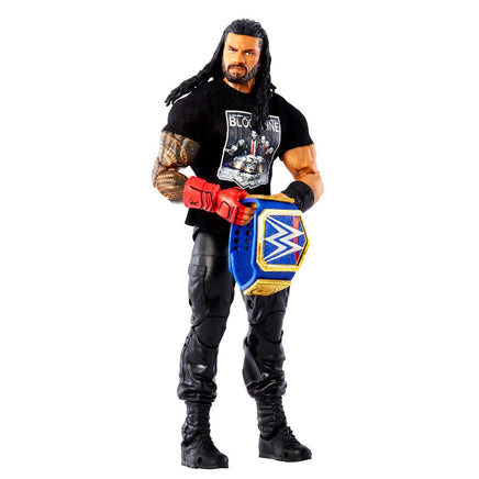 The WWE Ultimate Edition Wave 14 Roman Reigns Action Figure features your favorite WWE Superstar with multiple heads, swappable hands, and authentic attire! The Big Dog, Roman Reigns, is portrayed in his 2021 look with a red gauntlet and soft goods "Bloodline" shirt. Also includes a red lei and Universal Championship Title accessory. Highly detailed with TrueFX life-like detailing and featuring more than 30 points of articulation, Ultimate Edition figures let WWE collectors and kids recreate everything from entrance poses to in-ring finishers for the ultimate play-and-display experience. Figure measures approximately 6-inches tall x 3 1/4-inches long x 2-inches wide. Ages 8 and up.