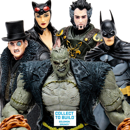 The DC Gaming Build-A Wave 1 Arkham City 7-Inch Scale Action Figures set of 4 the epic 2011 Batman: Arkham City video game to life. Each action figure contains up to 22 points of articulation and comes with a character specific accessory along with a display base. Each figure also comes with a collectable art card with artwork on the front and a character biography on the back. Also included is a Build-A figure piece. Collect them all (sold separately) to build a the powerful and gruesome Solomon Grundy!