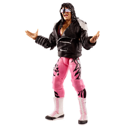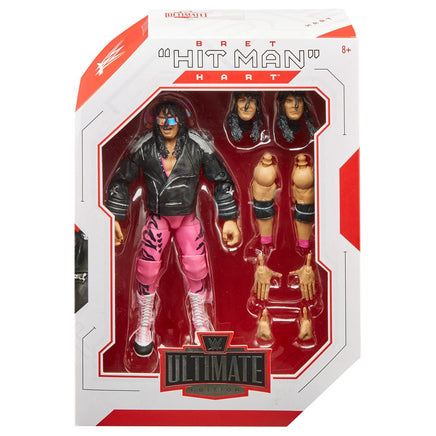 Take your WWE collection to the next level with this WWE Ultimate Edition Bret "Hitman" Hart from King of the Ring 1994. This Ultimate action figure features authentic ring gear including posable black faux leather jacket with double-jointed elbows, signature pink in-ring gear, white lace up boots, arm, wrist and knee bands plus sunglasses. The Ultimate Bret "Hitman" Hart action figure has over 30 points of articulation plus ab-crunch torso, double-jointed knees and double-jointed elbows for incredible signature moves and the ultimate pose and play action! Figure also includes swappable heads, arms and hands to recreate and relive even more favorite WWE Superstar moments. Fans will love this figure's versatility and play action that they can stage again and again in all-different ways. Approximately 6-inches, figure also includes TrueFX enhanced facial detailing for life-like authenticity. Ages 8 and up.
